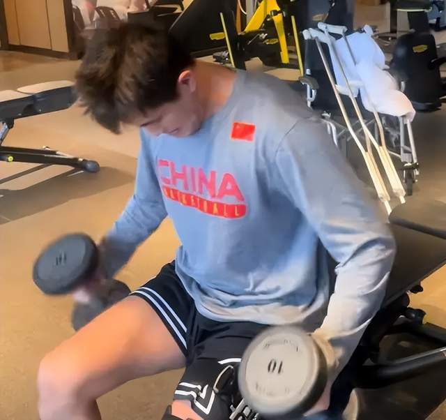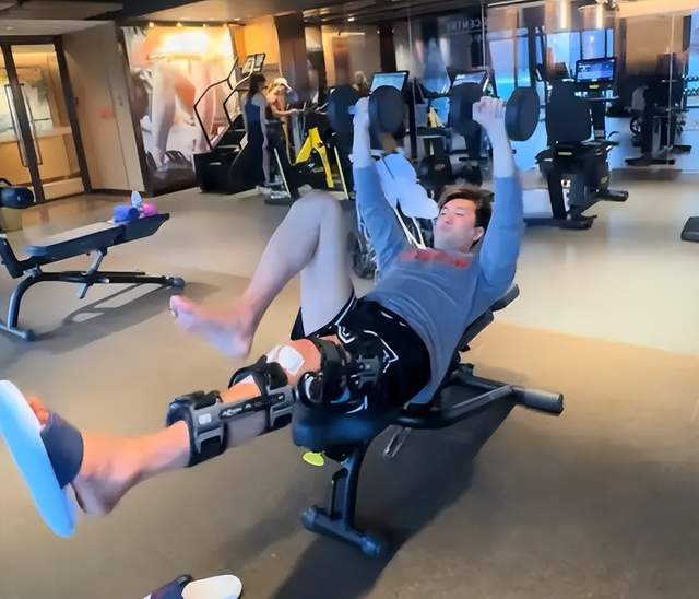 术后第七天,郭艾伦已现身康复中心,佩戴专业膝关节护具进行非负重力量训练。训练内容包括核心稳定、健侧肢体强化、等长收缩及低强度本体感觉激活,训练强度由康复团队严格控制,但其专注度与配合度被医疗组评价为“教科书级别”。尽管患侧大腿围度已出现明显萎缩,但他通过系统性训练,正全力遏制肌肉流失,为后续负重与爆发力重建打下基础。